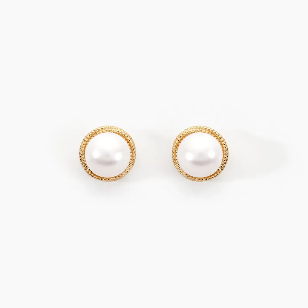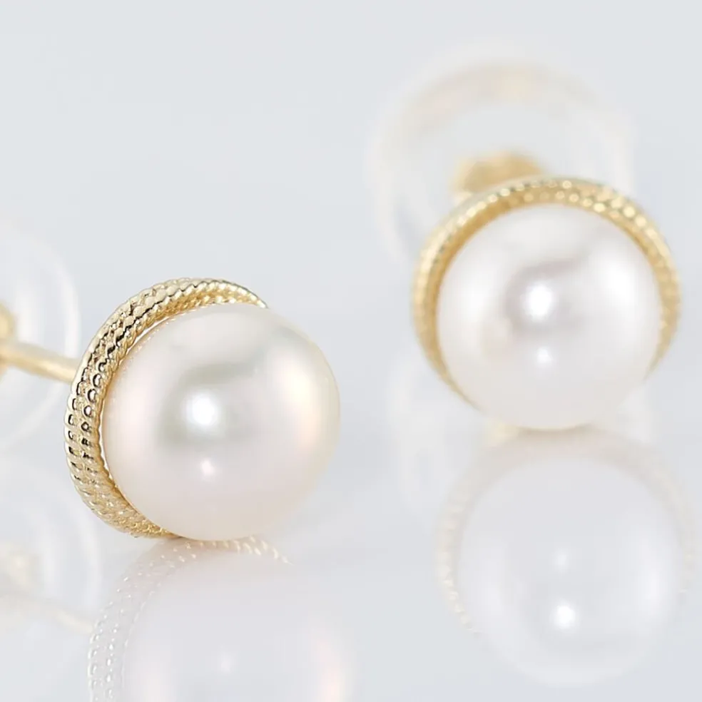 Boucles D’oreilles Or Jaune 375/1000 Perles De Cultures Nacres Boutons 5mm