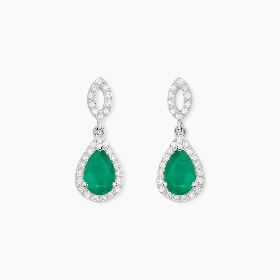 Boucles D’oreilles Or Blanc 375/1000 Sissi Emeraude Et Diamants