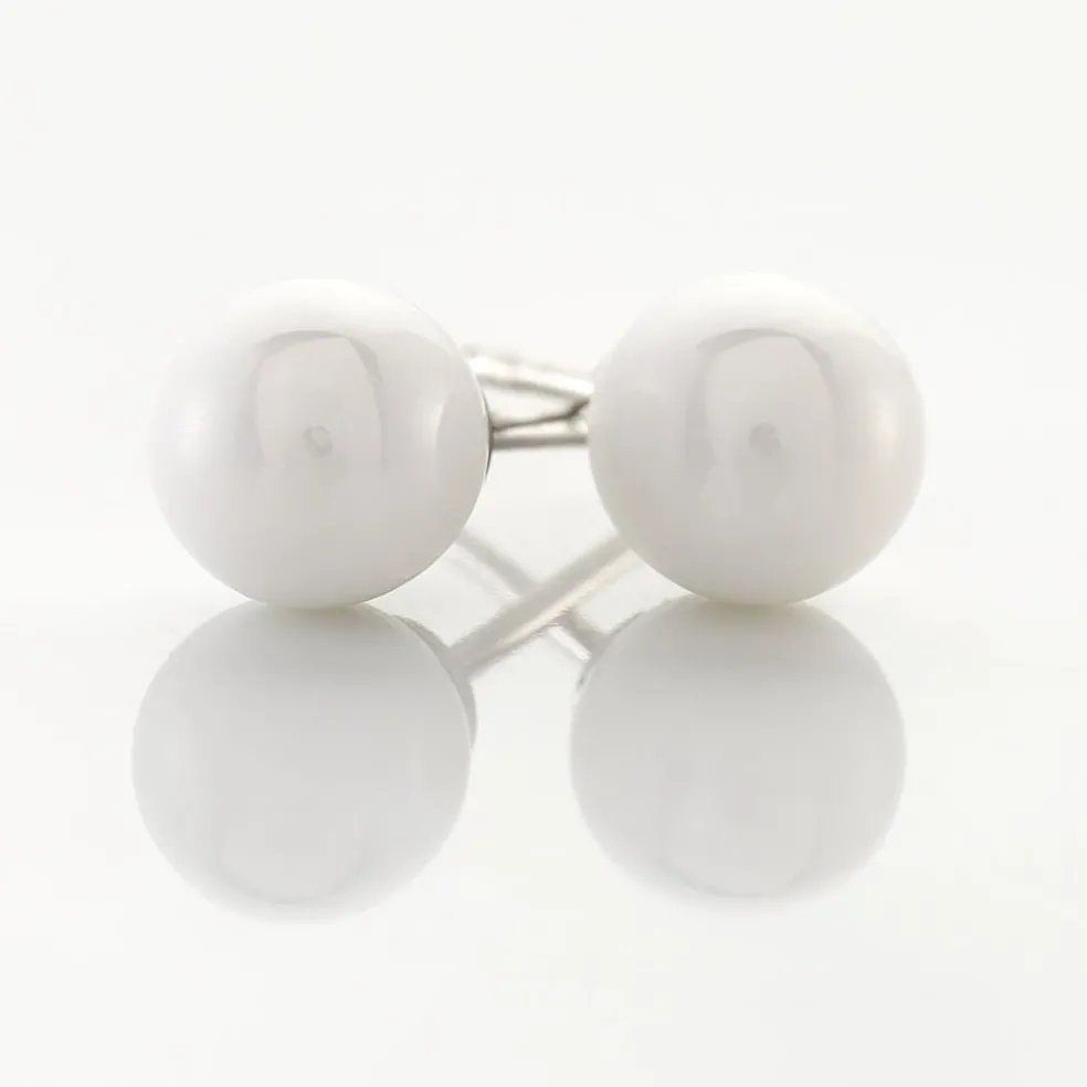 Boucles D’oreilles Puces Argent 925/1000 Boules Ceramiques Blanches Diametre 6mm