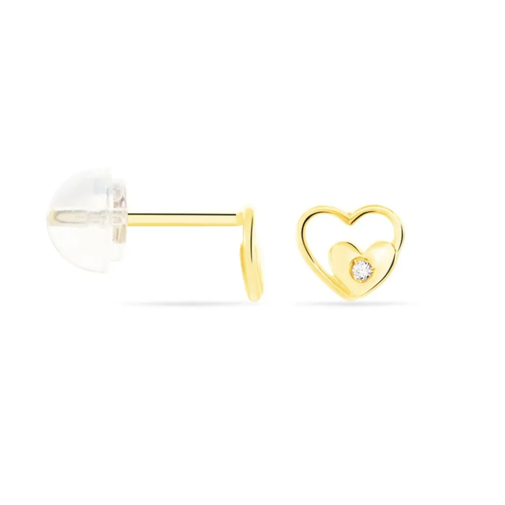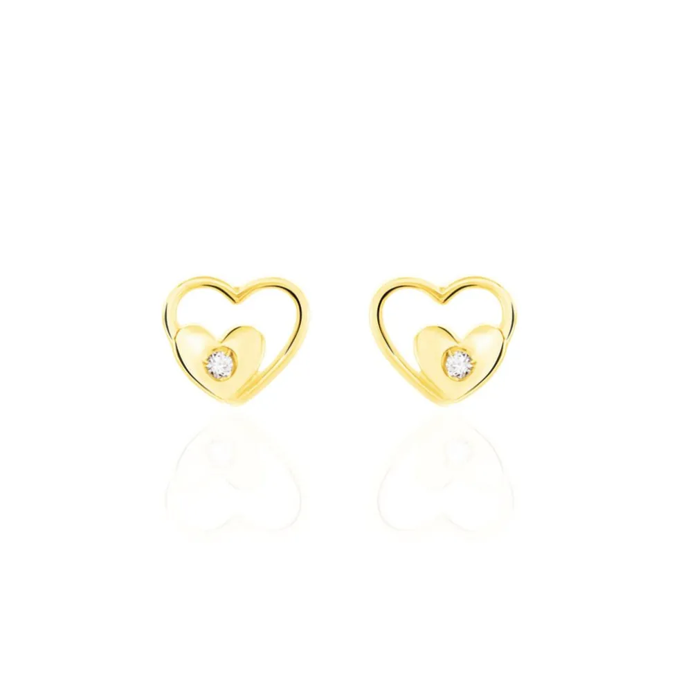 Boucles D’oreilles Or Jaune 375/1000 C艙ur Et Oxyde