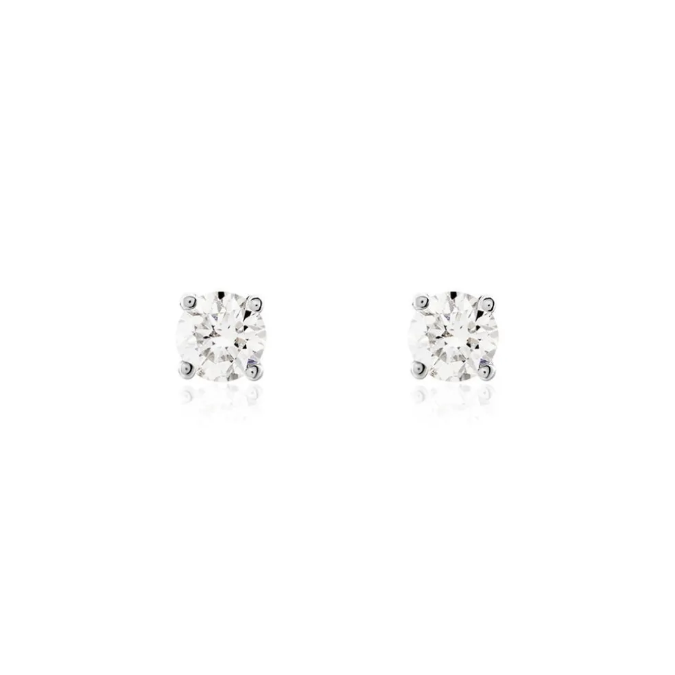 Boucles D’oreilles Platine 950/1000 Puces Diamants 0.30cts Sertis 4 Griffes Systemes Alpas