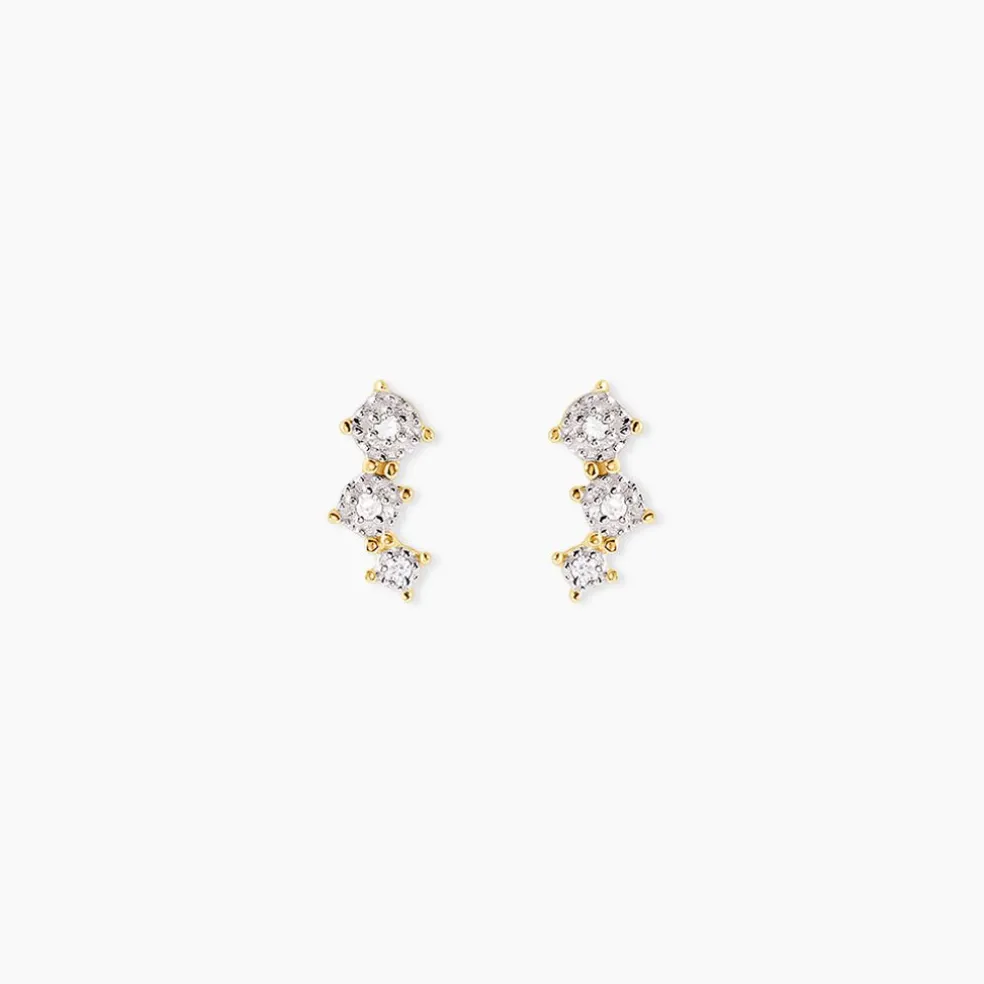 Boucles D’oreilles Puces Or Jaune 375/1000 Triple Pavage Diamants Ronds 0.003cts