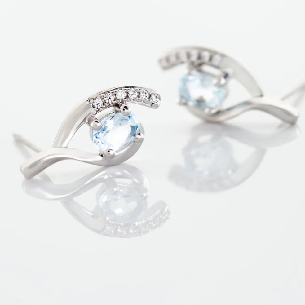 Boucles D’oreilles Puces Or Blanc 375/1000 Formes Vrillées Topazes Et Oxydes De Zirconium