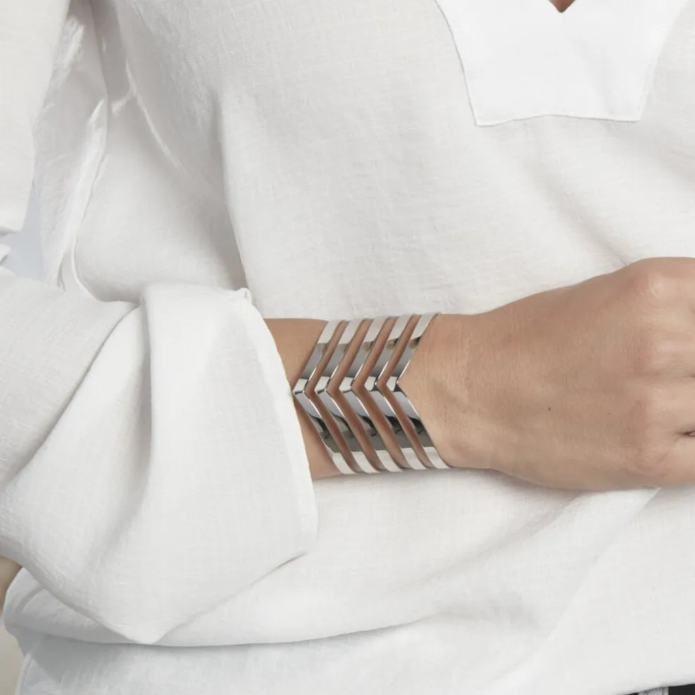 Bracelet Manchette Acier Multirang Ajoure Forme Aile De Mouette