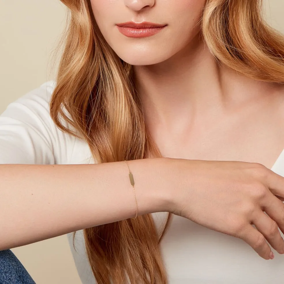 Bracelet Or Jaune 375/1000 Plaque Ovale 16+2cm