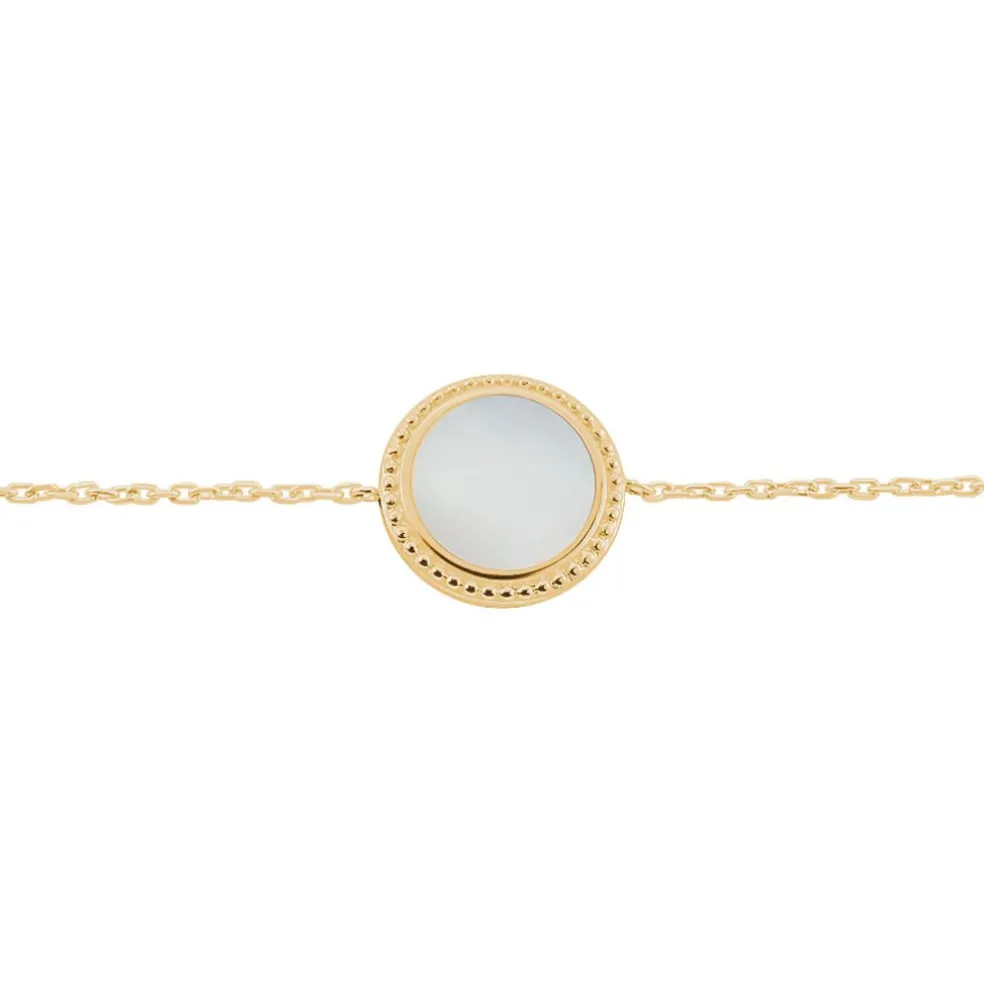 Bracelet Plaqué Or Jaune Nacre Ronde Entourage Perle 18cm