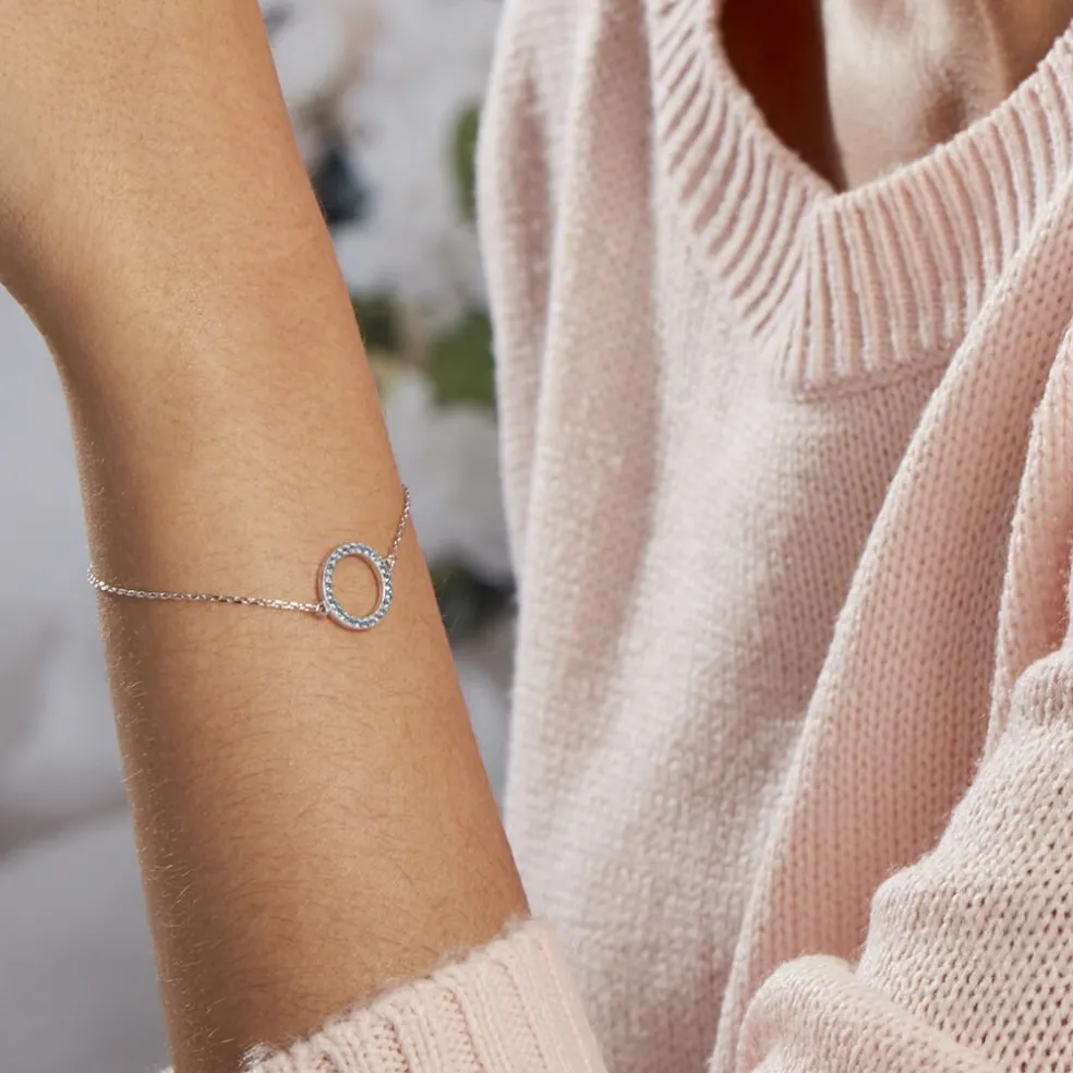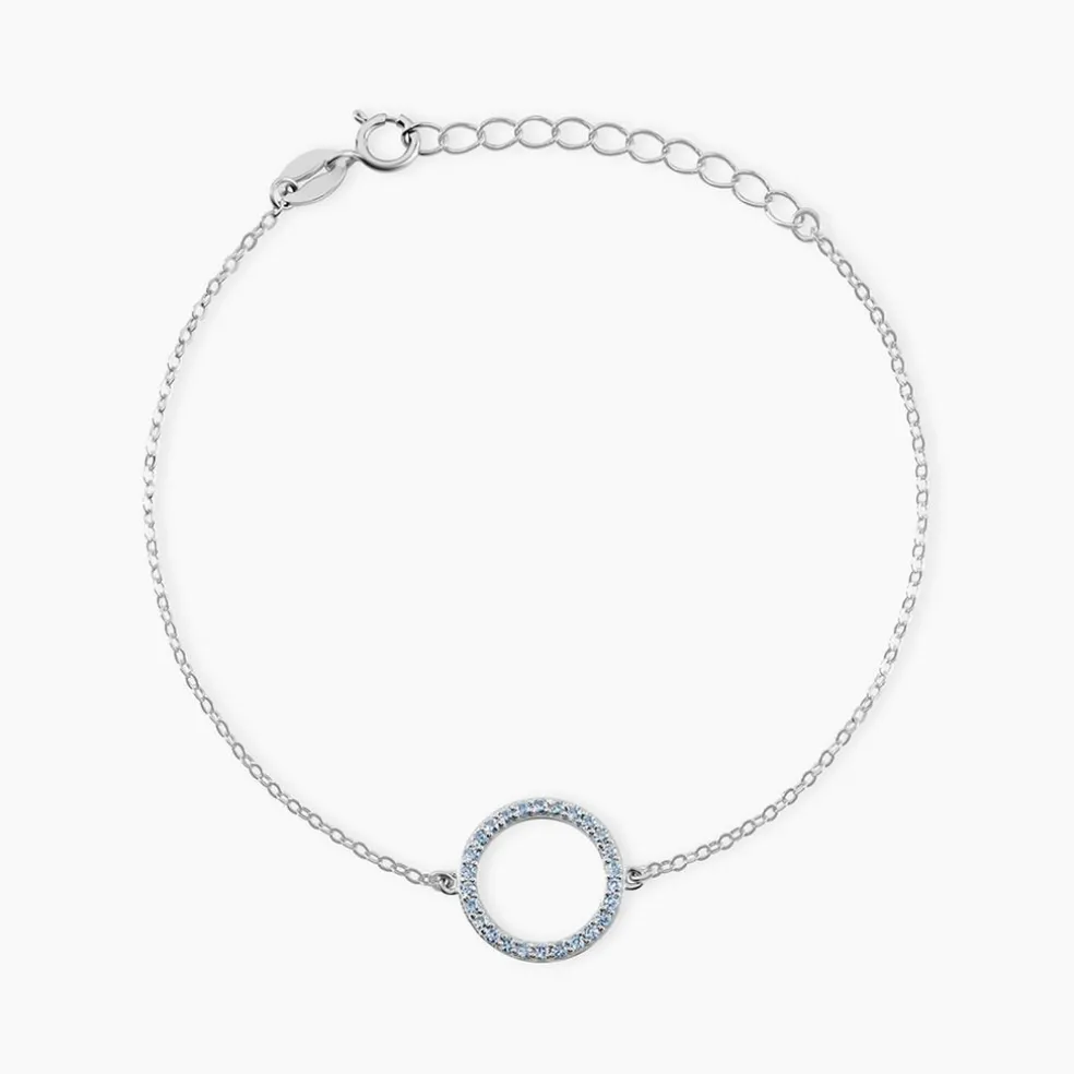Bracelet Argent 925/1000 ambroisie Cercle Pavage Oxydes De Zirconium Bleus 18.5cm
