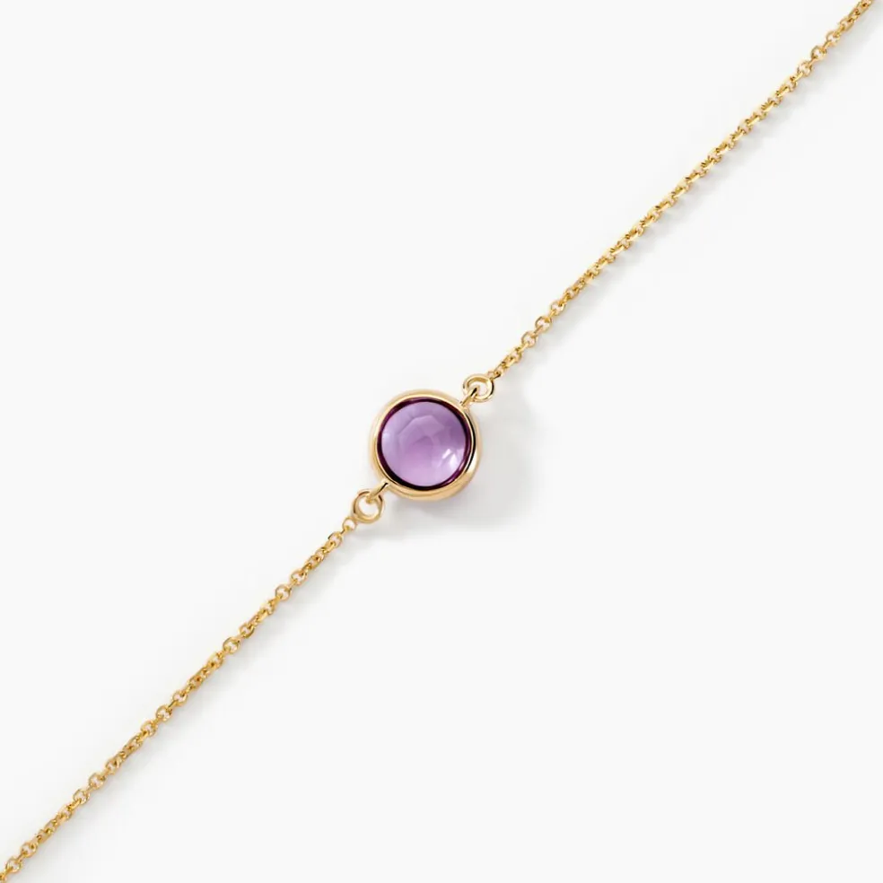 Bracelet Or Jaune 375/1000 Améthyste Serti Clos Maille Forçat 18cm