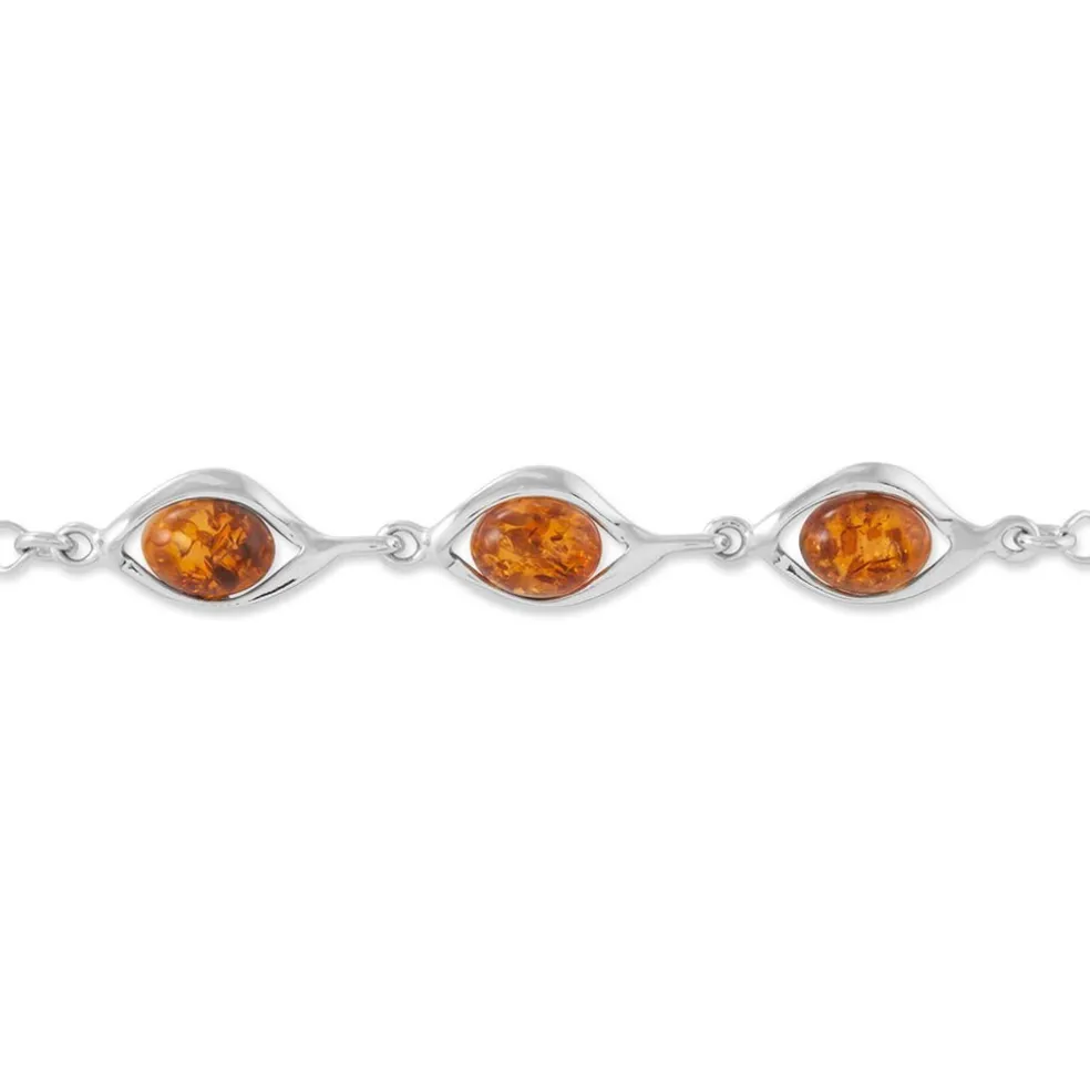 Bracelet Argent Blanc 925/1000 Ambre Boule Motif Simple Entoure Argent Blanc 22cm