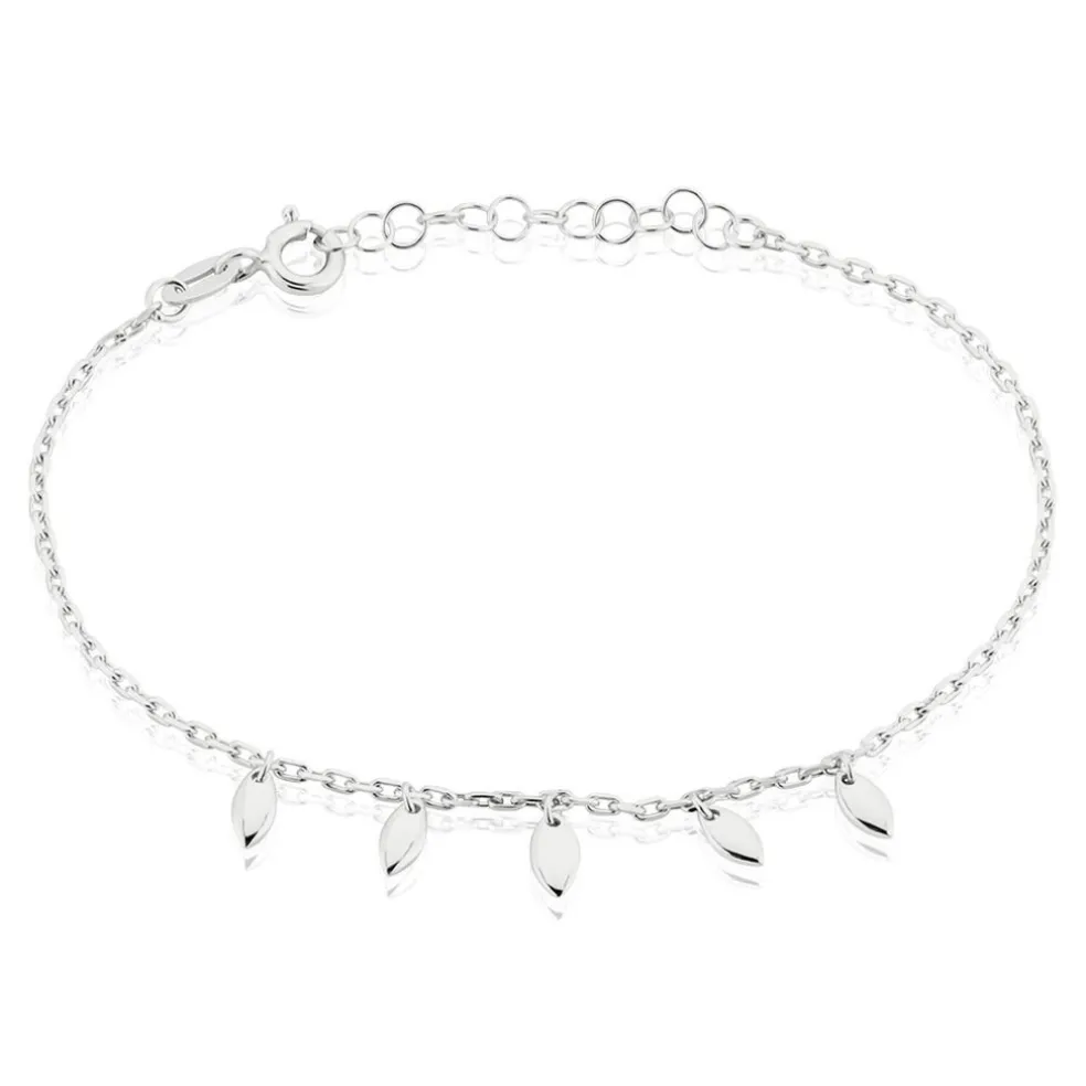 Bracelet Argent Blanc 925/1000 Pampilles Gouttes Maille Forcat Largeur 1.7mm 19cm
