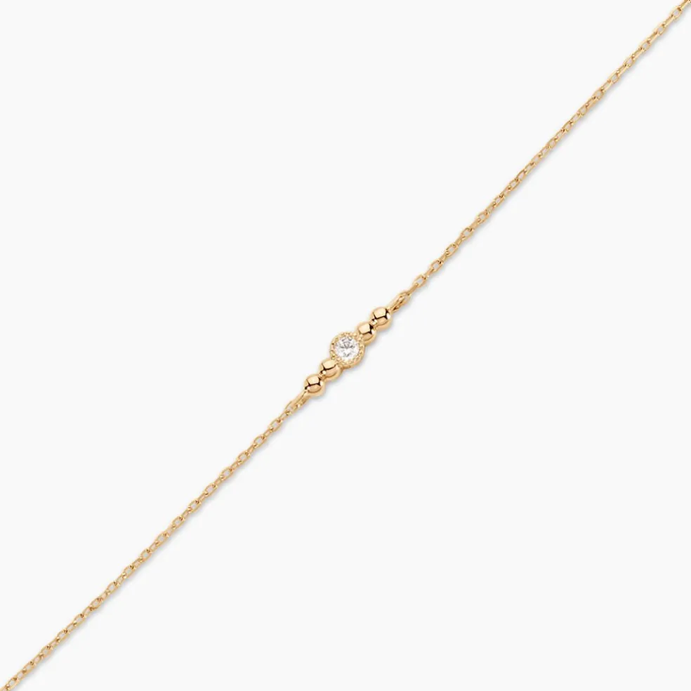 Bracelet Plaqué Or Jaune Boules Et Oxyde De Zirconium Central Serti Clos Maille Forcat 16+3Cm