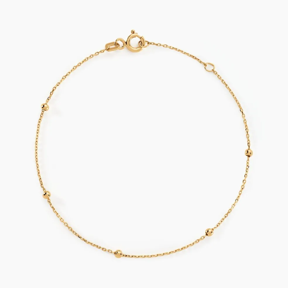 Bracelet Or Jaune 375/1000 Petites Boules Maille Forcat 16+2cm