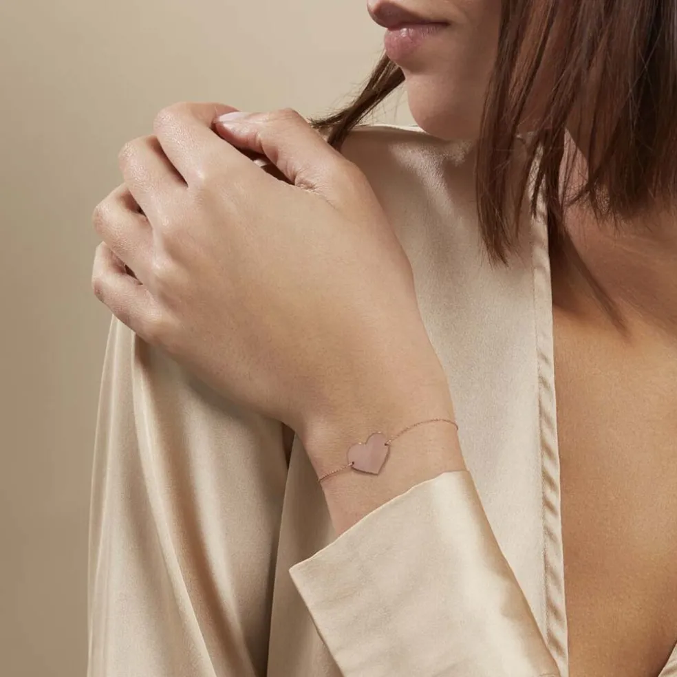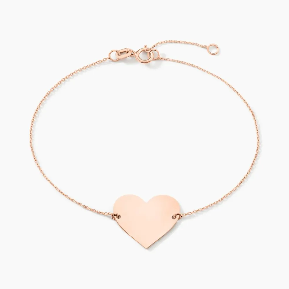 Bracelet Or Rose 375/1000 Coeur Gravable Maille Jaseron 18cm