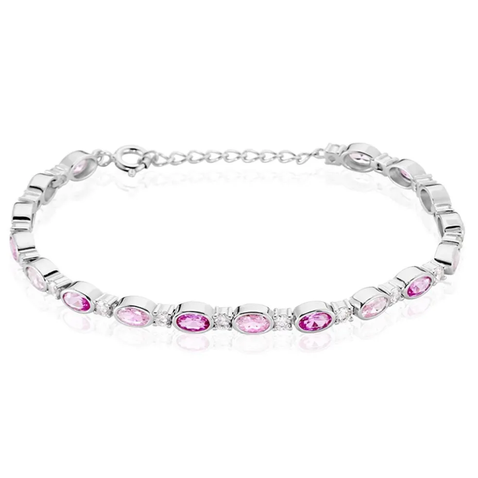 Bracelet Argent 925/1000 Oxydes De Zirconium Alternance Roses Sertis Clos 19cm