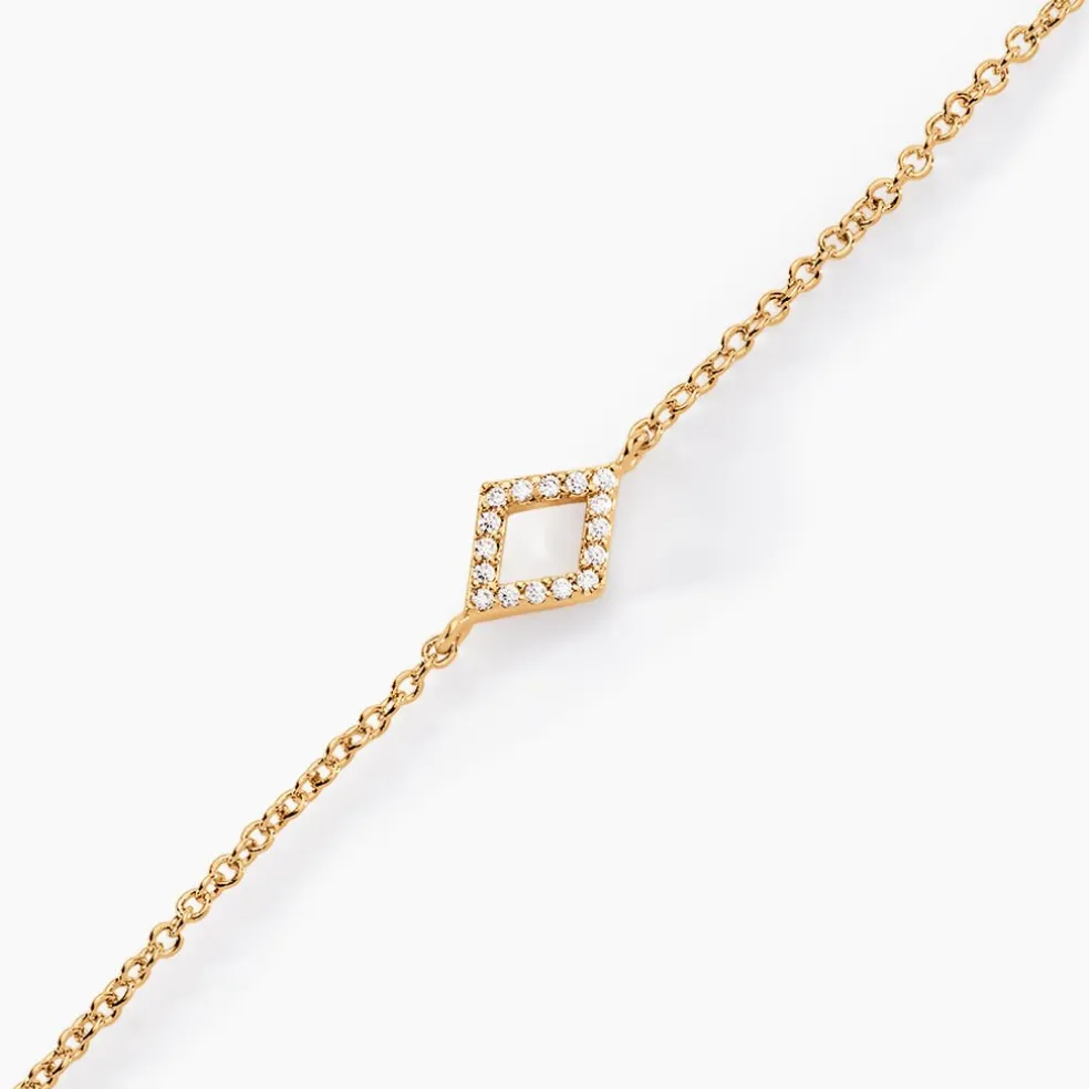 Bracelet Plaque Or Jaune Motif Losange Ajoure Pavage Oxydes De Zirconium 18cm