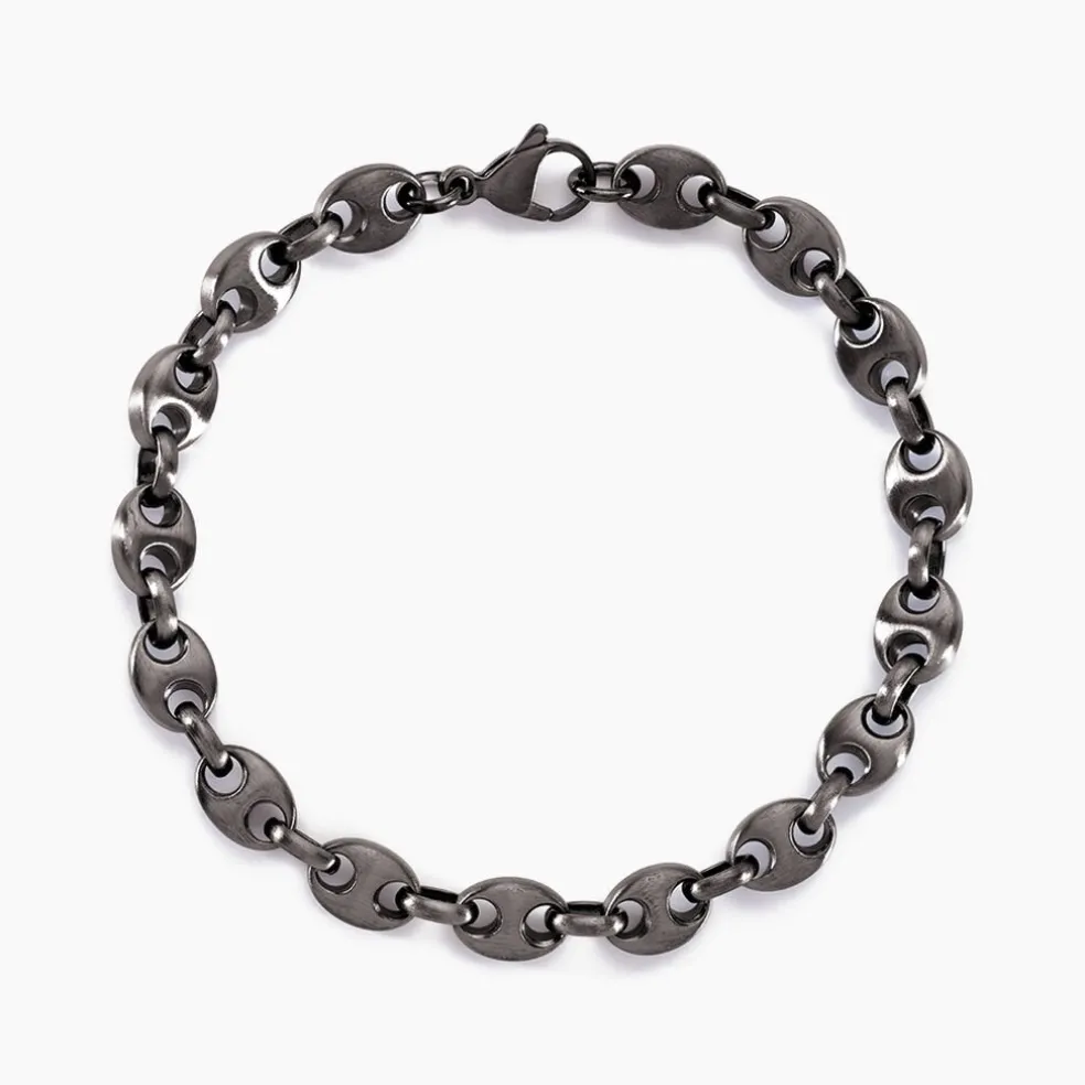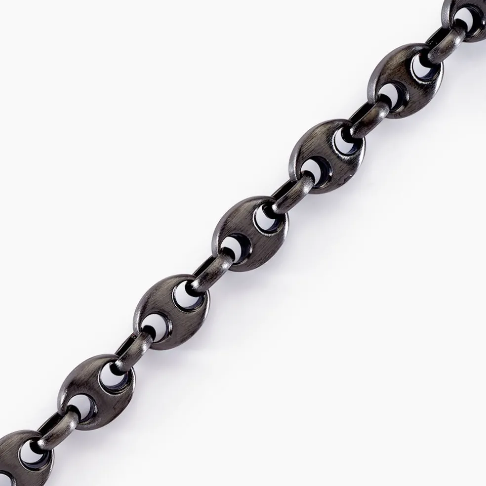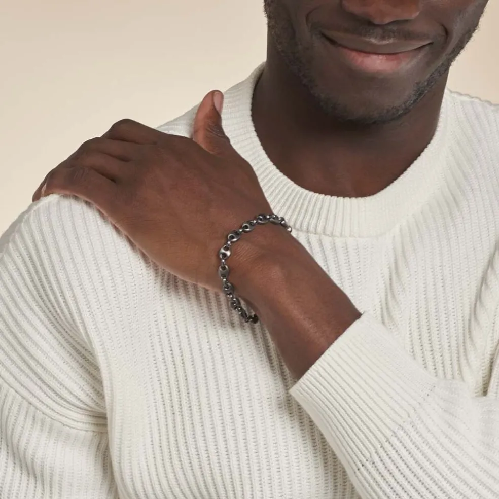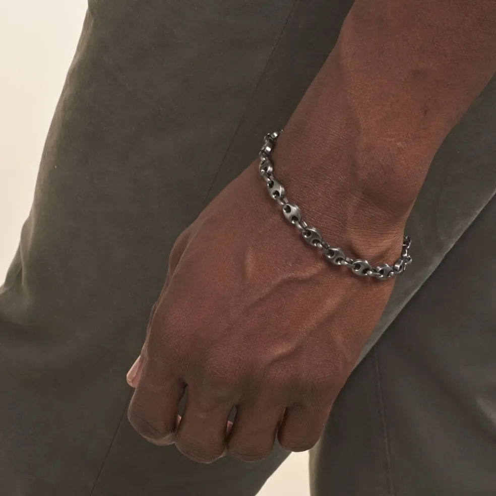Bracelet Acier Inoxydable Noir Fonce Antique Maille Grain De Cafe Largeur 7mm 21cm