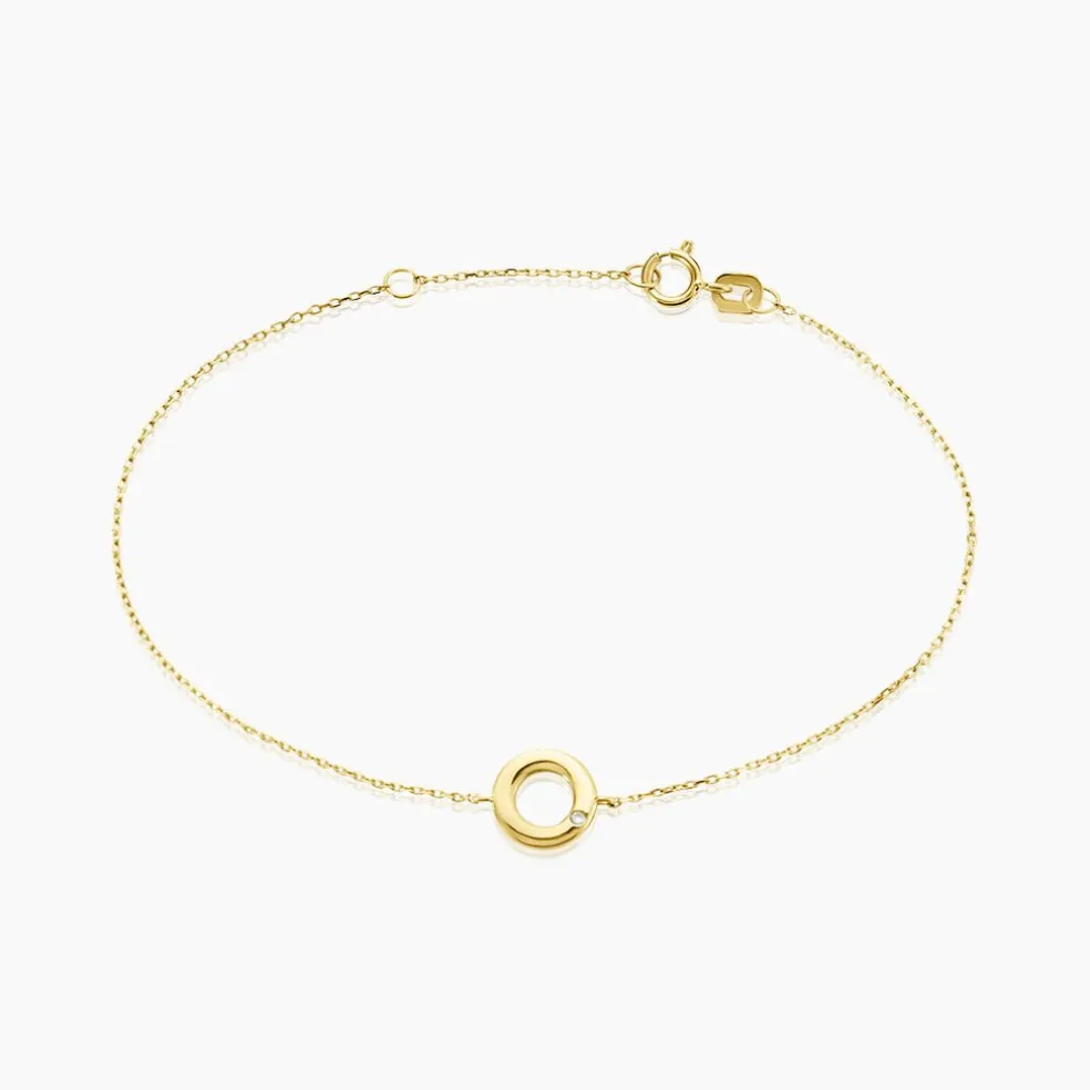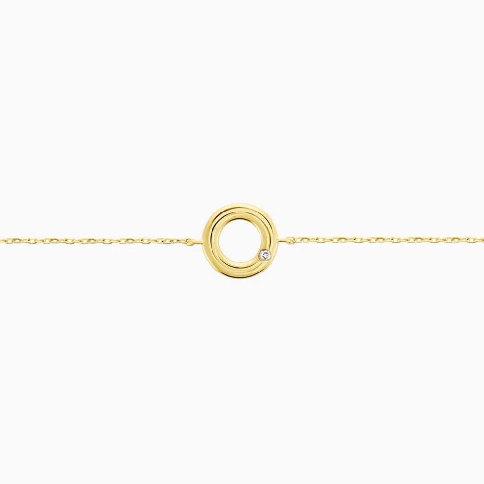 Bracelet Or Jaune 375/1000 Cercle Oxyde De Zirconium 0.015 Cts Serti Pavage Maille Forcat 18cm