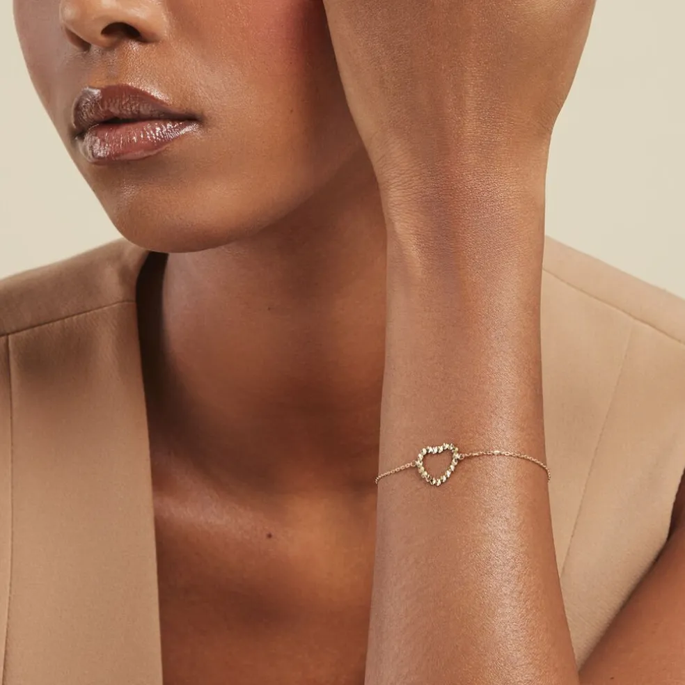 Bracelet Or Jaune 375/1000 C艙ur Ajoure Diamante Maille Forcat 16+2cm