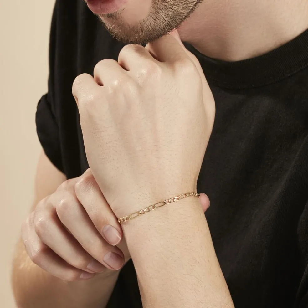 Bracelet Or Jaune 375/1000 Maille Alternée 1/3 Largeur 3.75mm 21cm