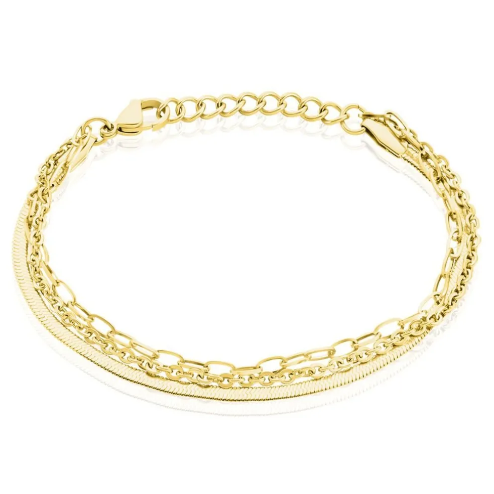 Bracelet Acier Inoxydable Jaune Triple Chaînes Miroir Cheval Et Forçat Ronde Largeur 7.4mm 19cm