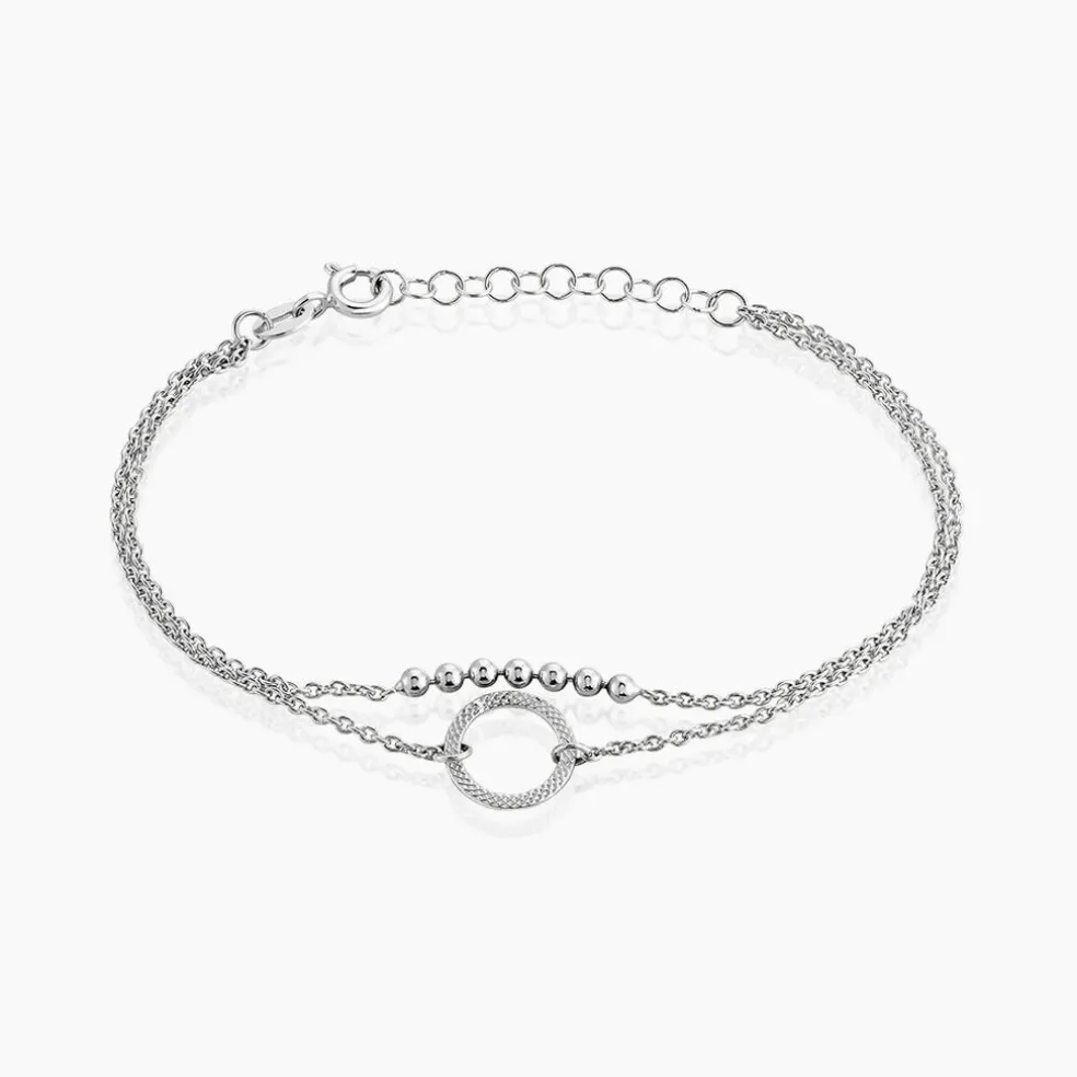 Bracelet Argent Blanc 925/1000 Cercle Ajouré Et Boules Double Maille Forçat 16+3cm