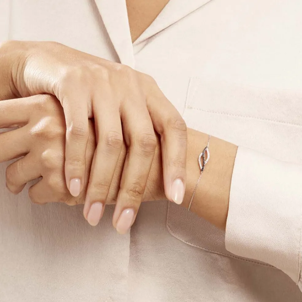 Bracelet Or Blanc 375/1000 Forme Courbes Diamants Noirs Et Diamants Blancs 18cm