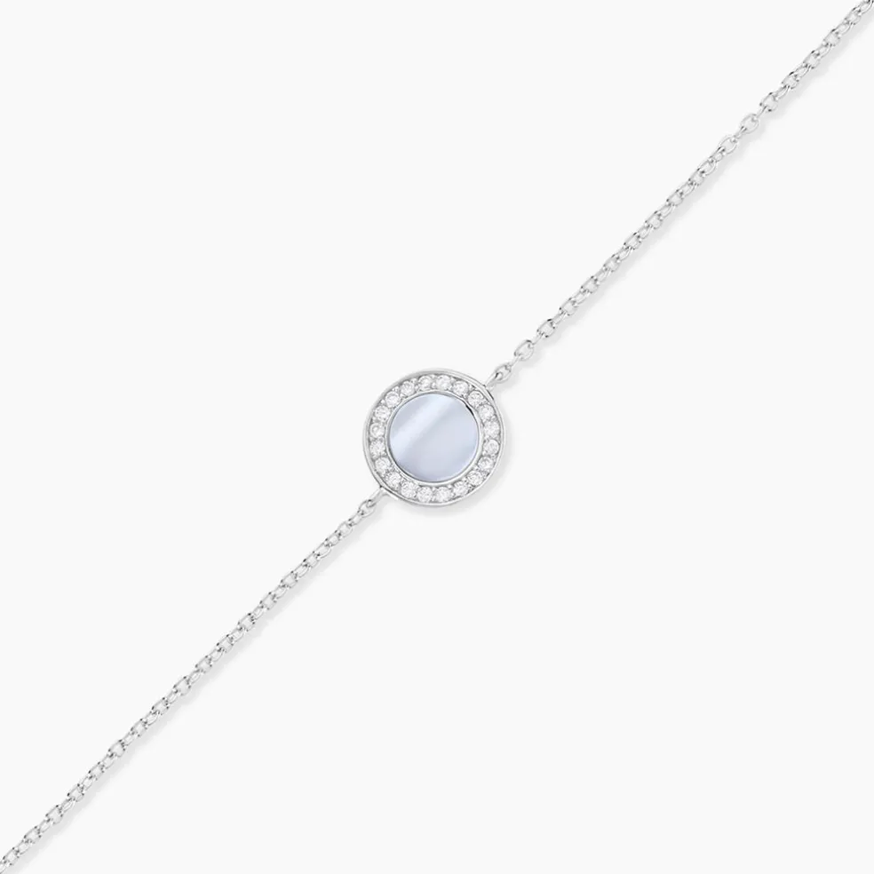 Bracelet Court Argent Blanc 925/1000 Cercle Nacre Entourage Oxyde De Zirconium Microsetting 16cm