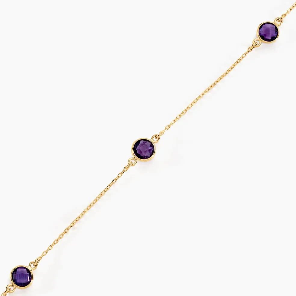 Bracelet Or Jaune 375/1000 3 Amethystes Violet Serti Clos 18cm