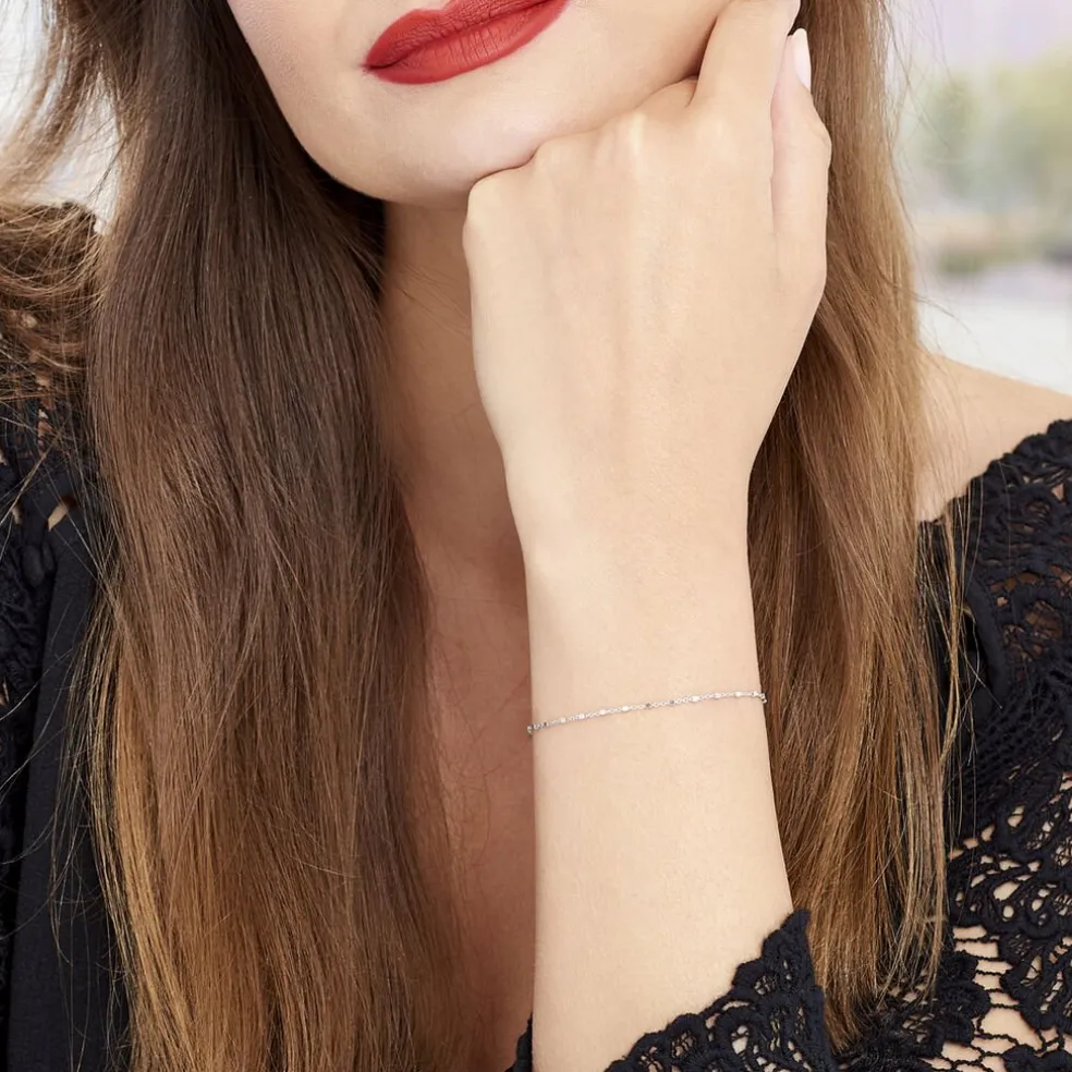 Bracelet Argent Blanc 925/1000 Maille Forcat + Petits Cubes 19.5cm