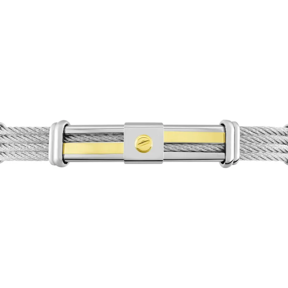 Bracelet Acier + Cable + Decor Or 20.5/21cm