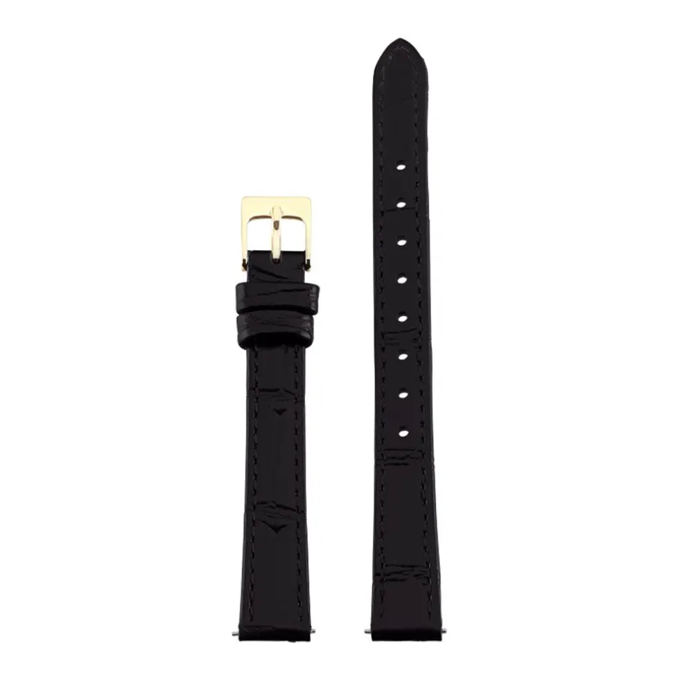 Bracelet De Montre Belton Cuir Alligator Noir Boucle Dorée 12mm