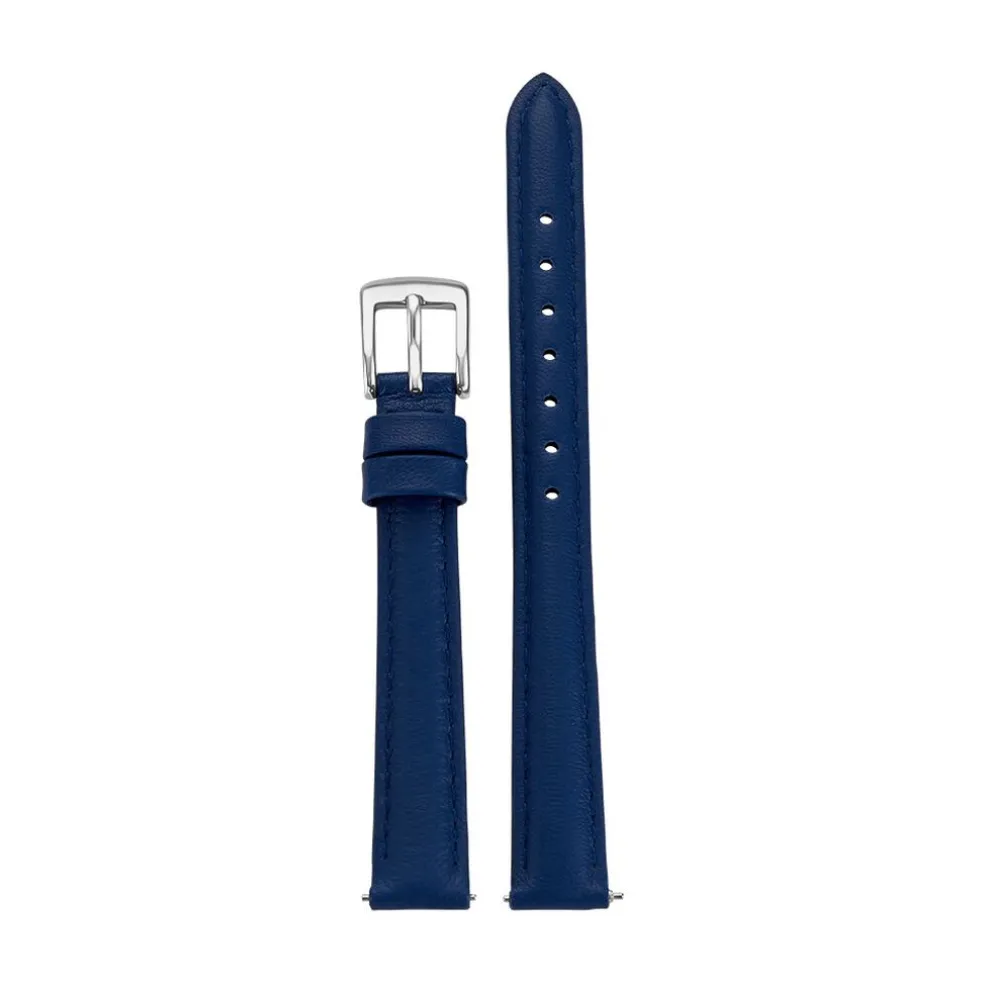 Bracelet De Montre Bracelet Cuir D’agneau Mat Bleu Marine Boucle Argentee 12/10 Mm