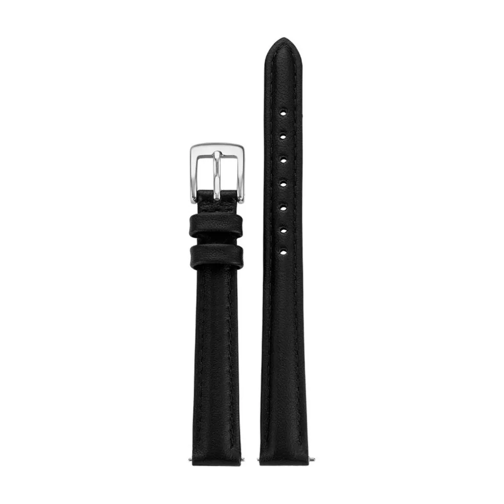 Bracelet De Montre Rochet Cuir D’agneau Mat Noir Boucle Argentée 12/10mm