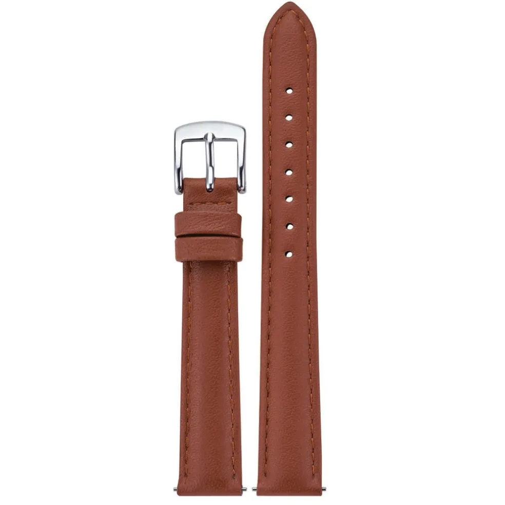 Bracelet De Montre Rochet Cuir D’agneau Mat Cognac Boucle Argentée 14/12mm