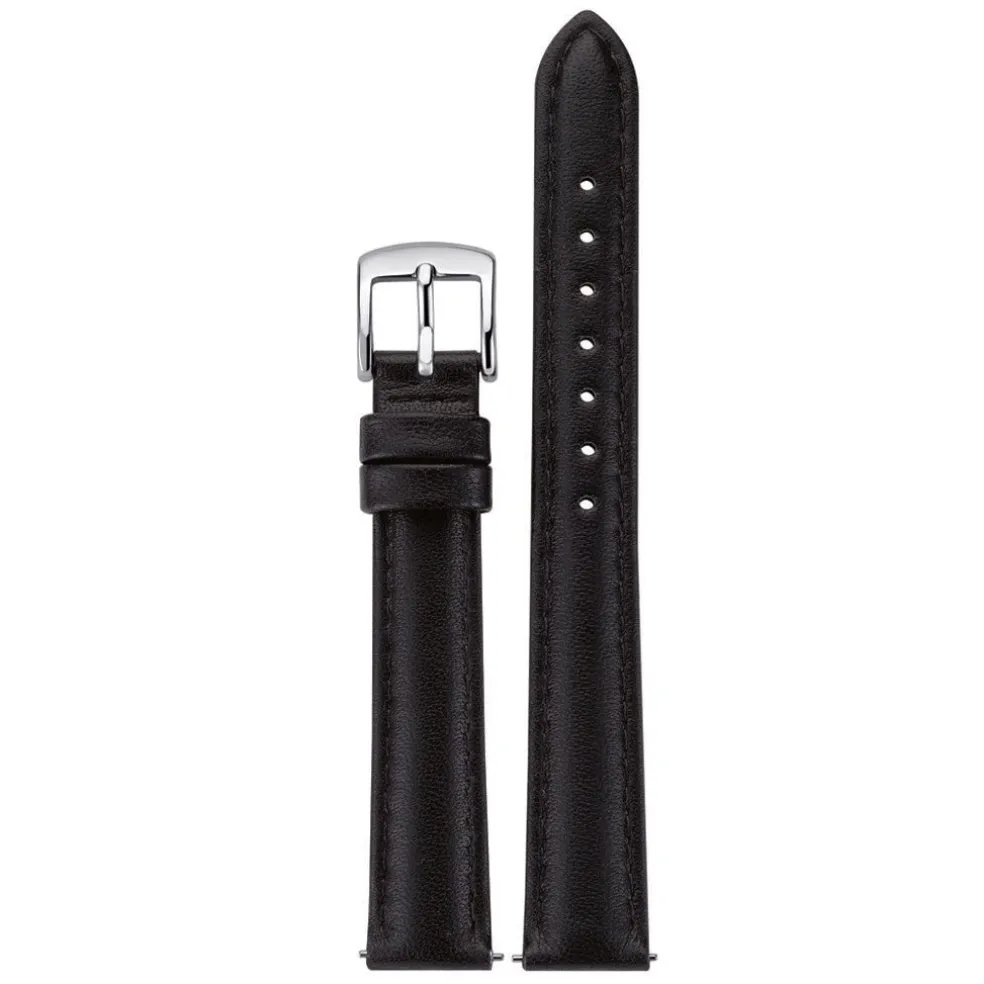 Bracelet De Montre Rochet Cuir D’agneau Mat Noir Boucle Argentée 14/12mm