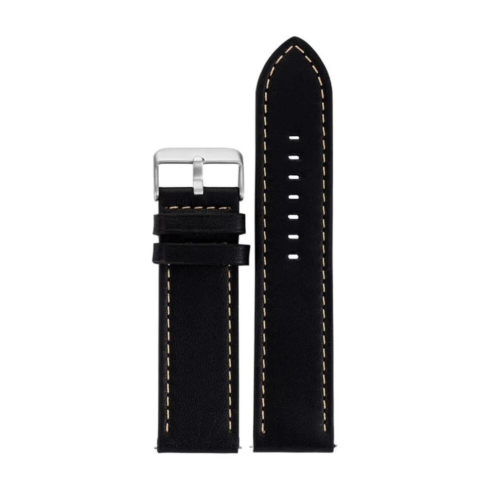 Bracelet De Montre Rochet Cuir D’agneau Mat Noir Boucle Argentée 22/22mm