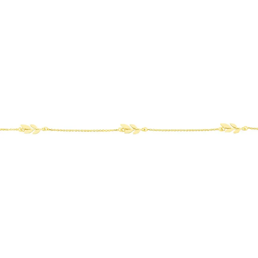 Bracelet Or Jaune 375/1000 Motif Feuille Maille Jaseron 18cm