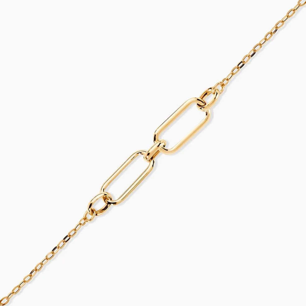 Bracelet Or Jaune 375/1000 Double Maillons Maille Forcat Ronde 16+3cm