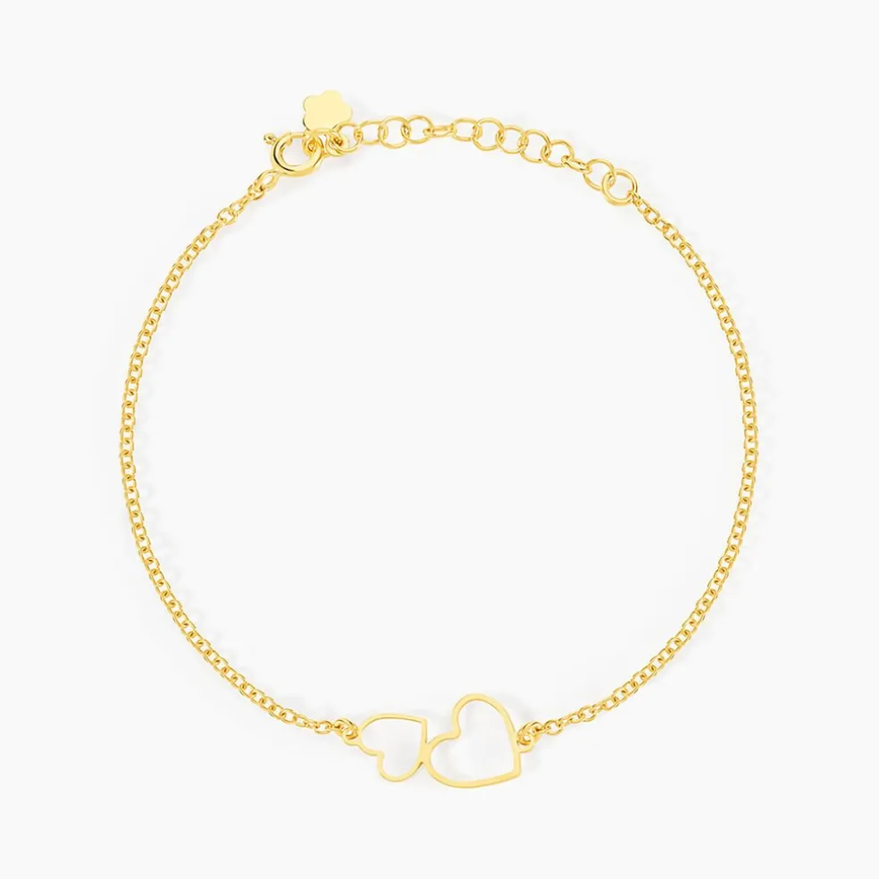 Bracelet Argent Jaune 925/1000 Double Coeurs Ajoures Maille Forcat 19cm