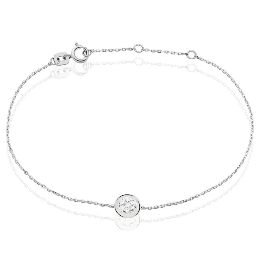 Bracelet Or Blanc 375/1000 Multipierres Diamants 0.09ct Serti Clos 18.5cm