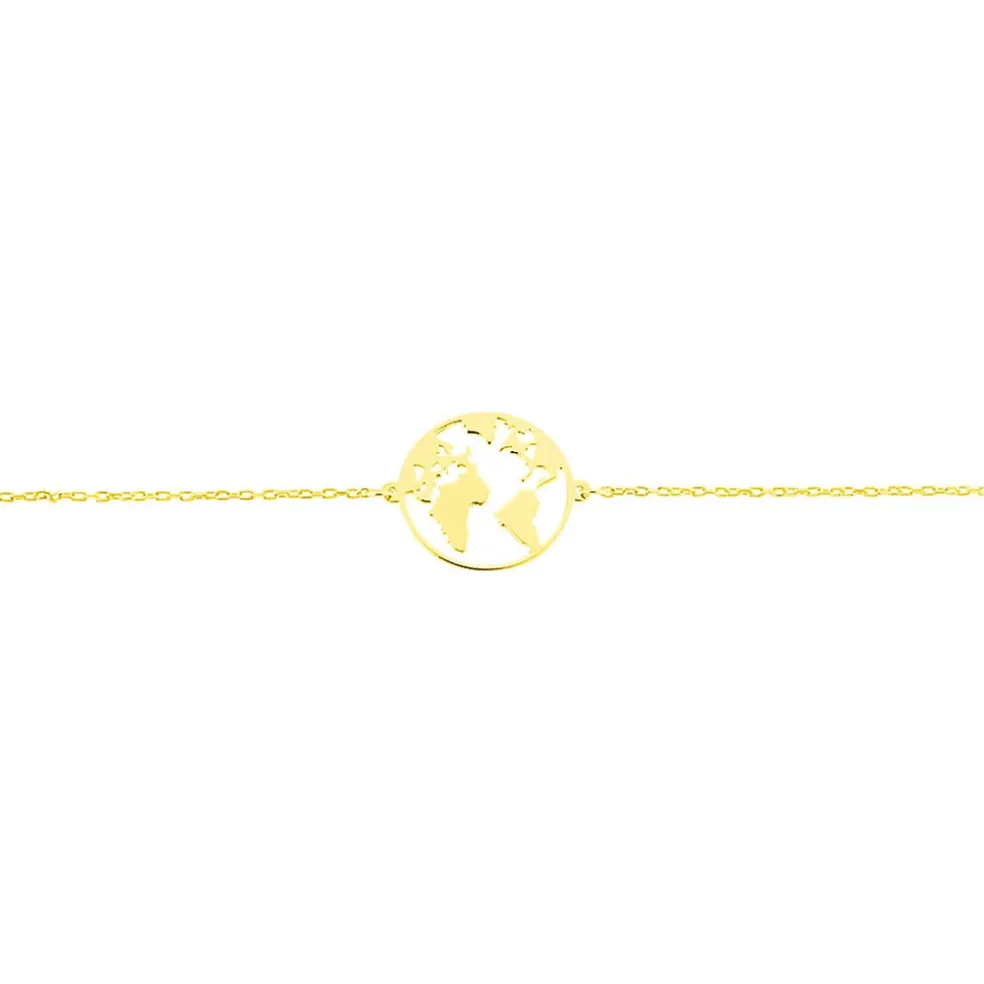 Bracelet Or Jaune 375/1000 Planete Monde Maille Forcat 16+2cm