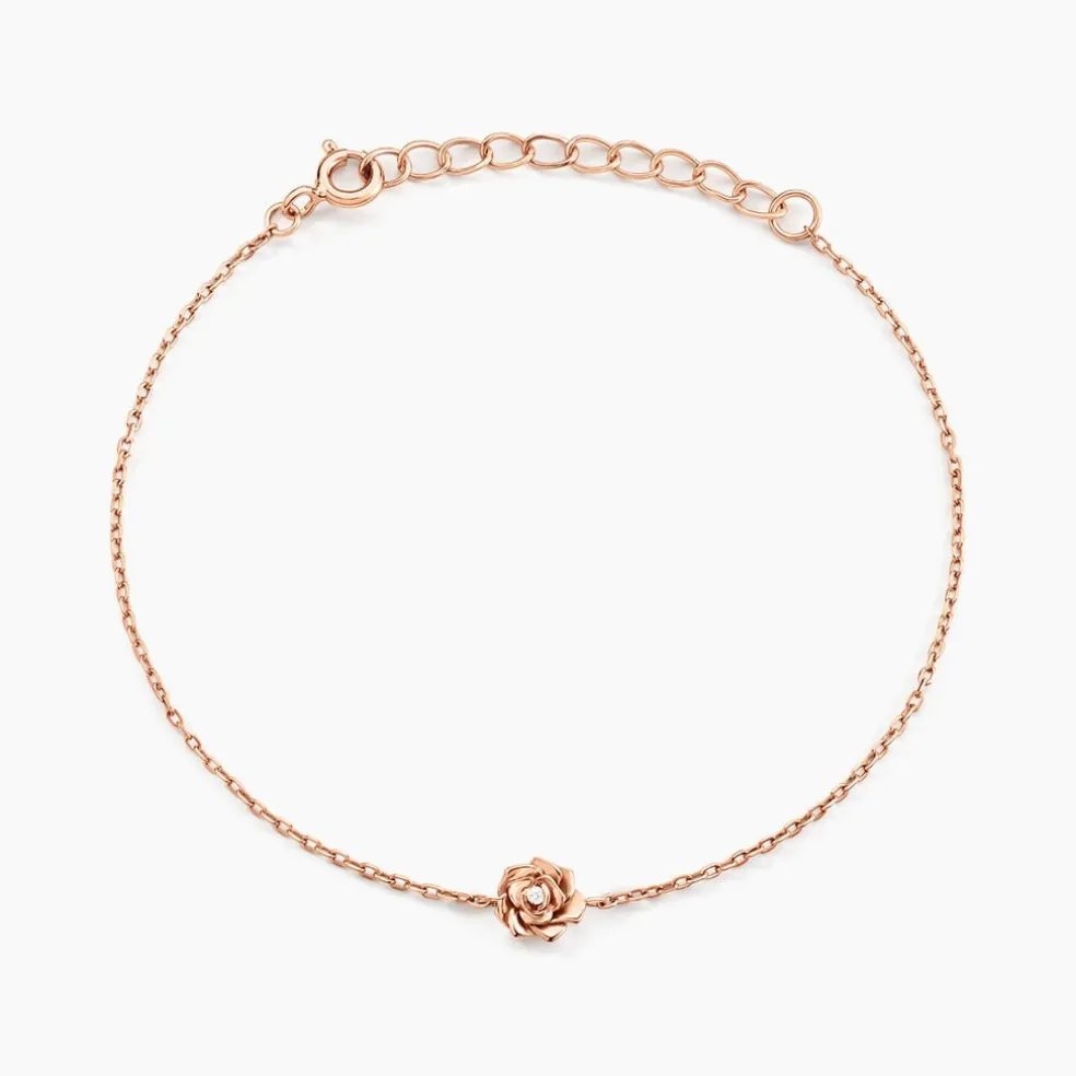 Bracelet Argent Rose 925/1000 Rose Oxyde De Zirconium Central Maille Forcat 18.5cm