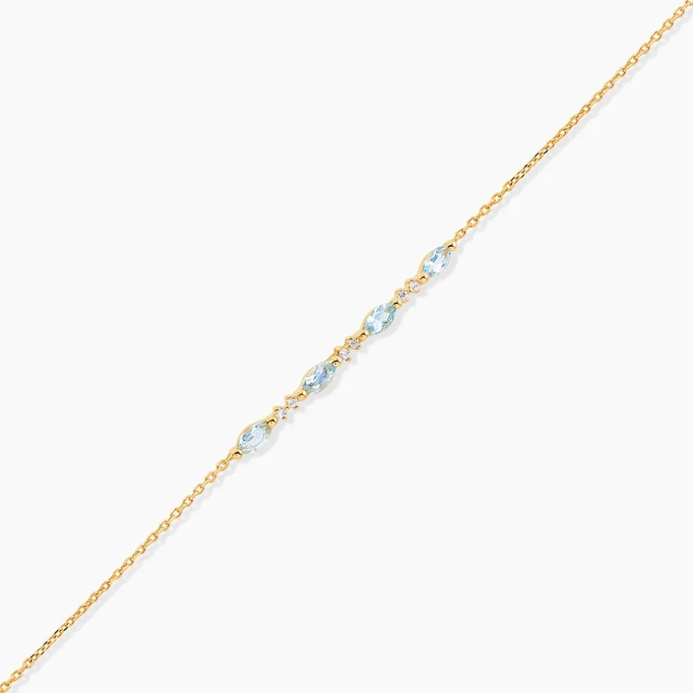 Bracelet Or Jaune 375/1000 Topaze Navettes Sertis 2 Griffes Accompagnees D’Oxydes De Zirconium Maille Forcat 16+2Cm