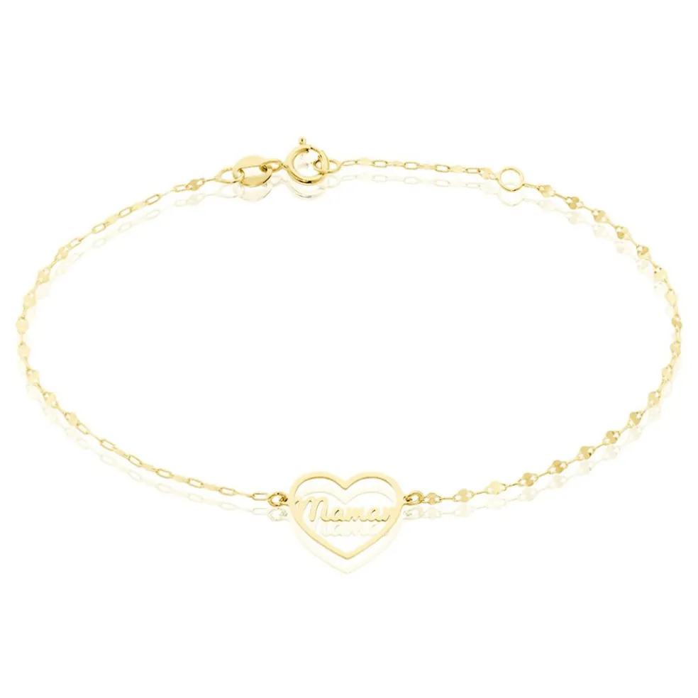 Bracelet Or Jaune 375/1000 C艙ur Ajoure Avec Message Maman Maille Lumina 16+2cm