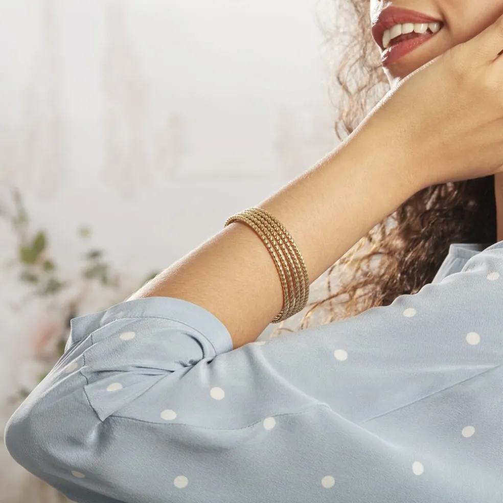 Bracelet Jonc Acier Dore Ouvert Multirangs Tresses Largeur 2.5mm Diametre 60mm