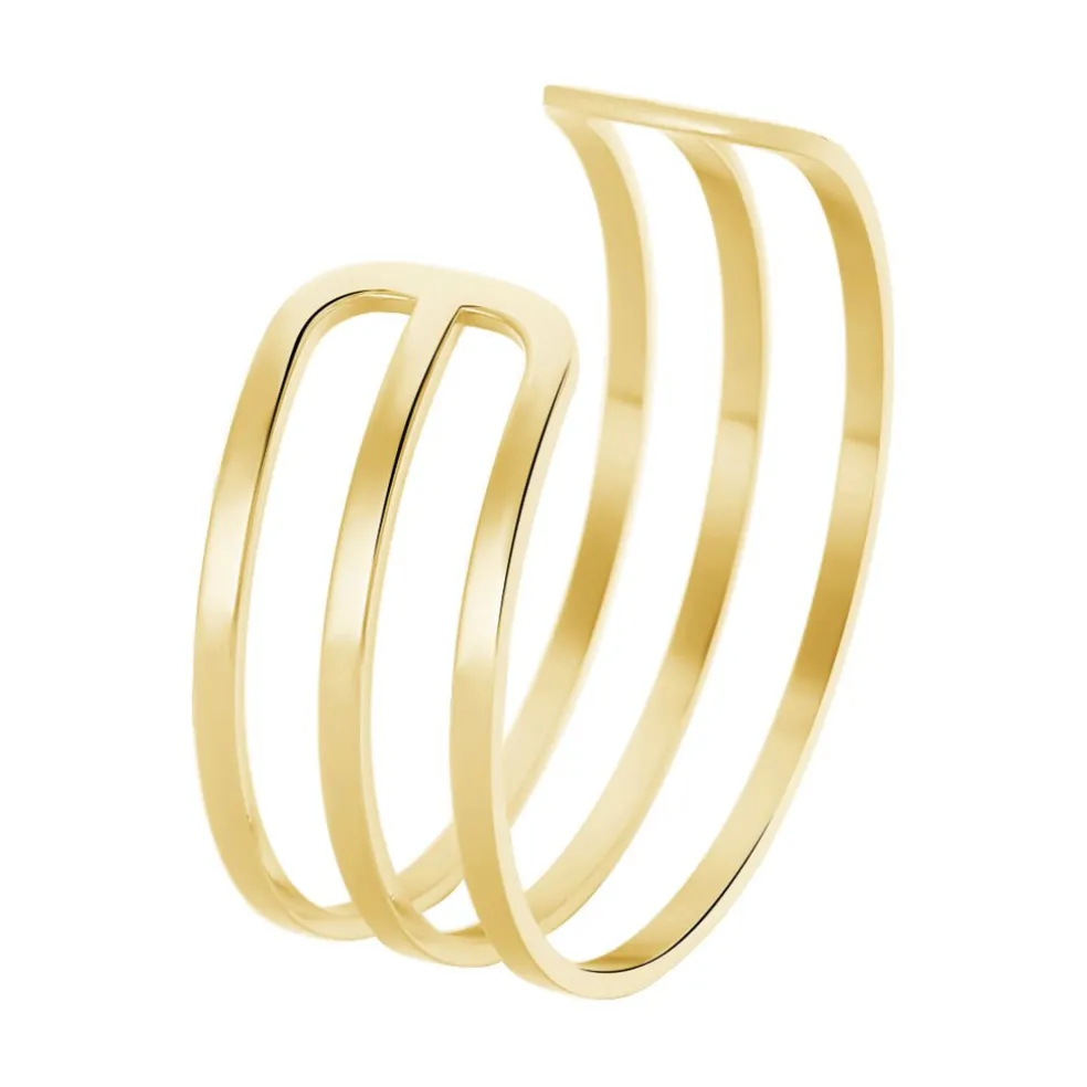 Bracelet Jonc Acier Inoxydable Jaune Ouvert 3 Rangs Ajoures