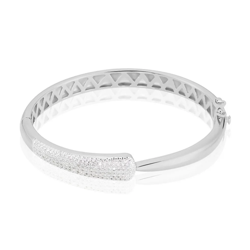 Jonc Argent 925/1000 Semi Pavage Oxydes De Zirconium