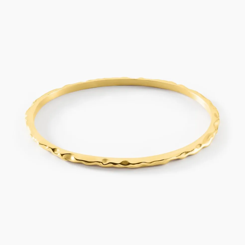 Bracelet Jonc Acier Inoxydable Jaune Effet Martelé Diamètre 66mm