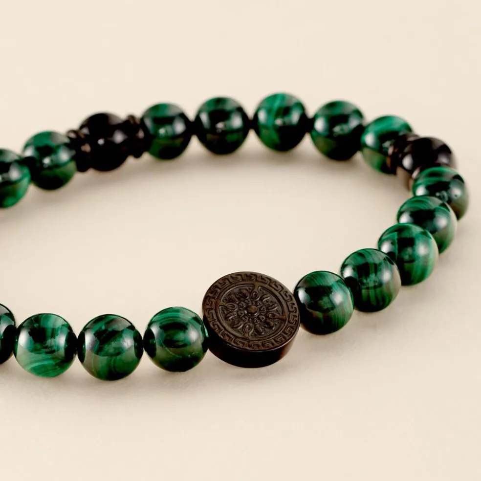Bracelet Jourdan Homme Acier Noir Malachite Verte Elastique Jh100019b