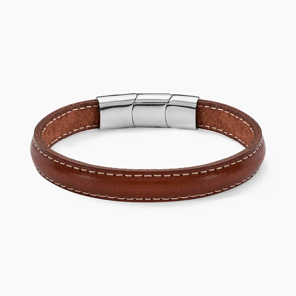 Bracelet Jourdan Rupert Cuir Marron Acier Argente 21cm Jh300054b